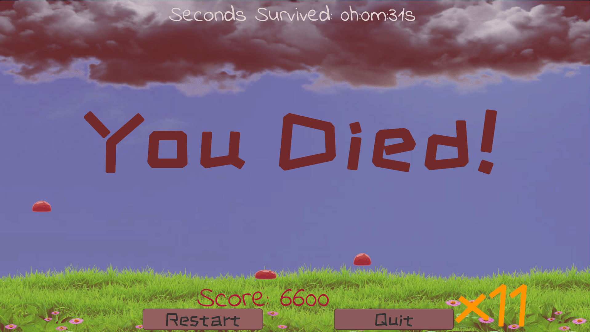 Bubble slimes are falling from the sky! Whatever will we do? Have no fear, for all it takes is one man filled with a joyous whimsey to stomp the slimes! Take down every last one till the clouds go away, or maybe try to get a high combo!